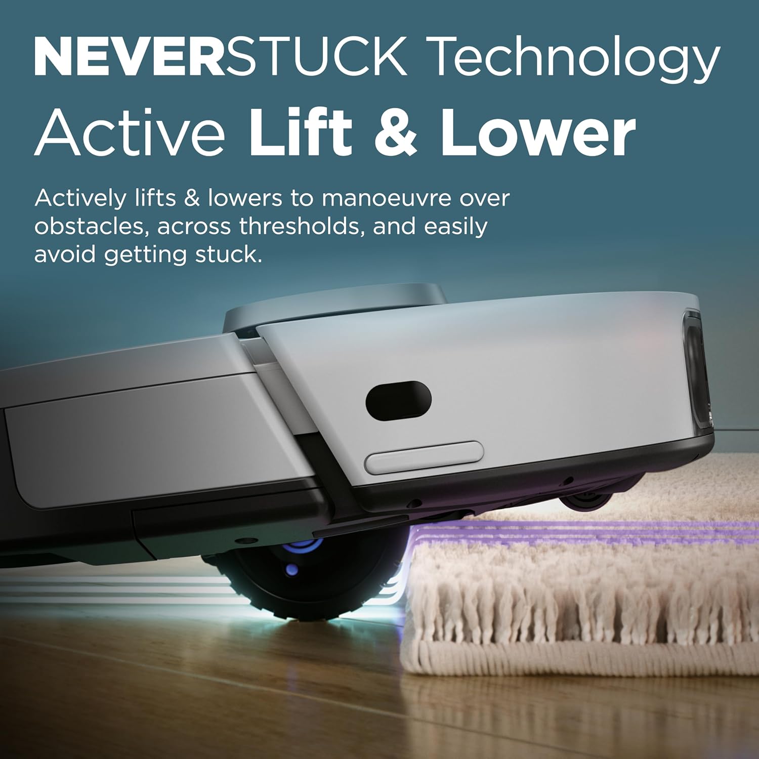 • Enhanced cleaning coverage with NeverStuck Technology: Lifts and lowers the device over thresholds, obstacles, bumps, thick carpets and more
