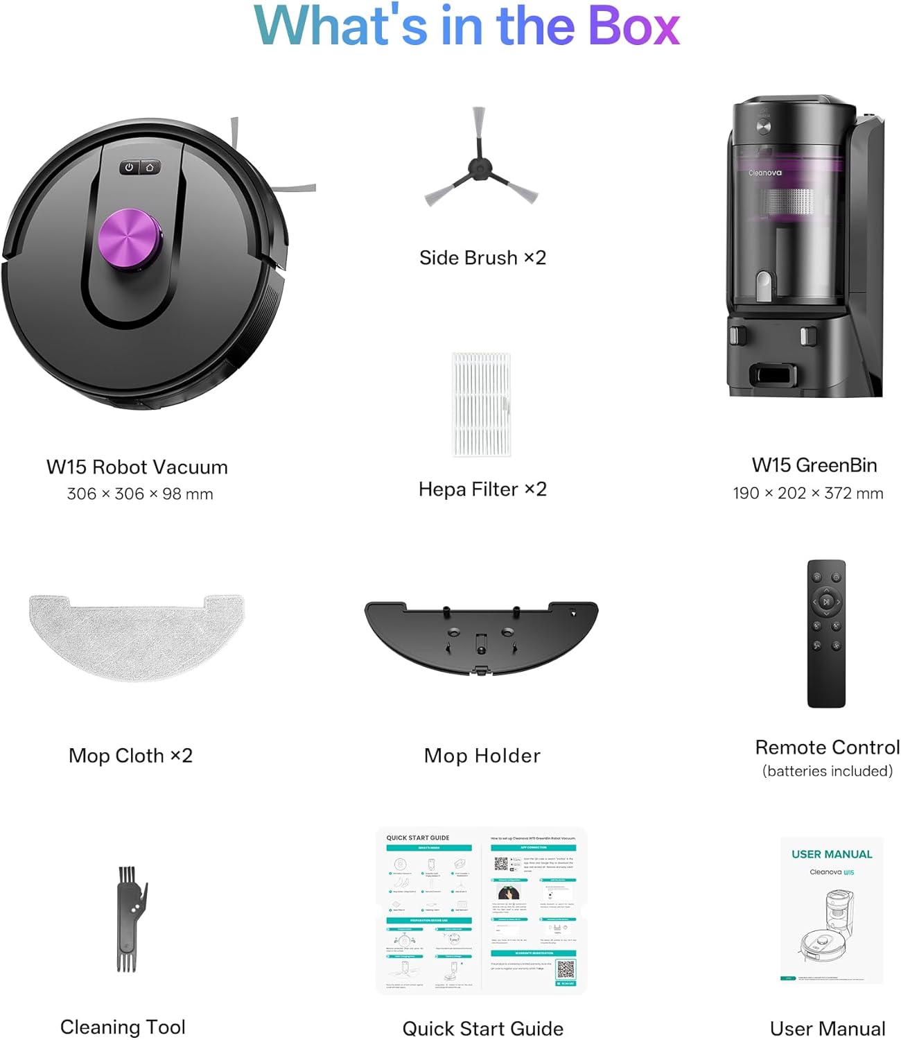 • 【Smart Multiple Control Options】 The W15 GreenBin robot vacuum and mop connects via 2.4 GHz Wi-Fi and is conveniently controlled via a smartphone app. It’s also compatible with Alexa, Google Assistant, and Siri (including for Apple Watch) – allowing start and stop via voice commands. The included remote control is ready to use immediately and offers the simplest operation – perfect for everyone in the family, especially seniors and children.