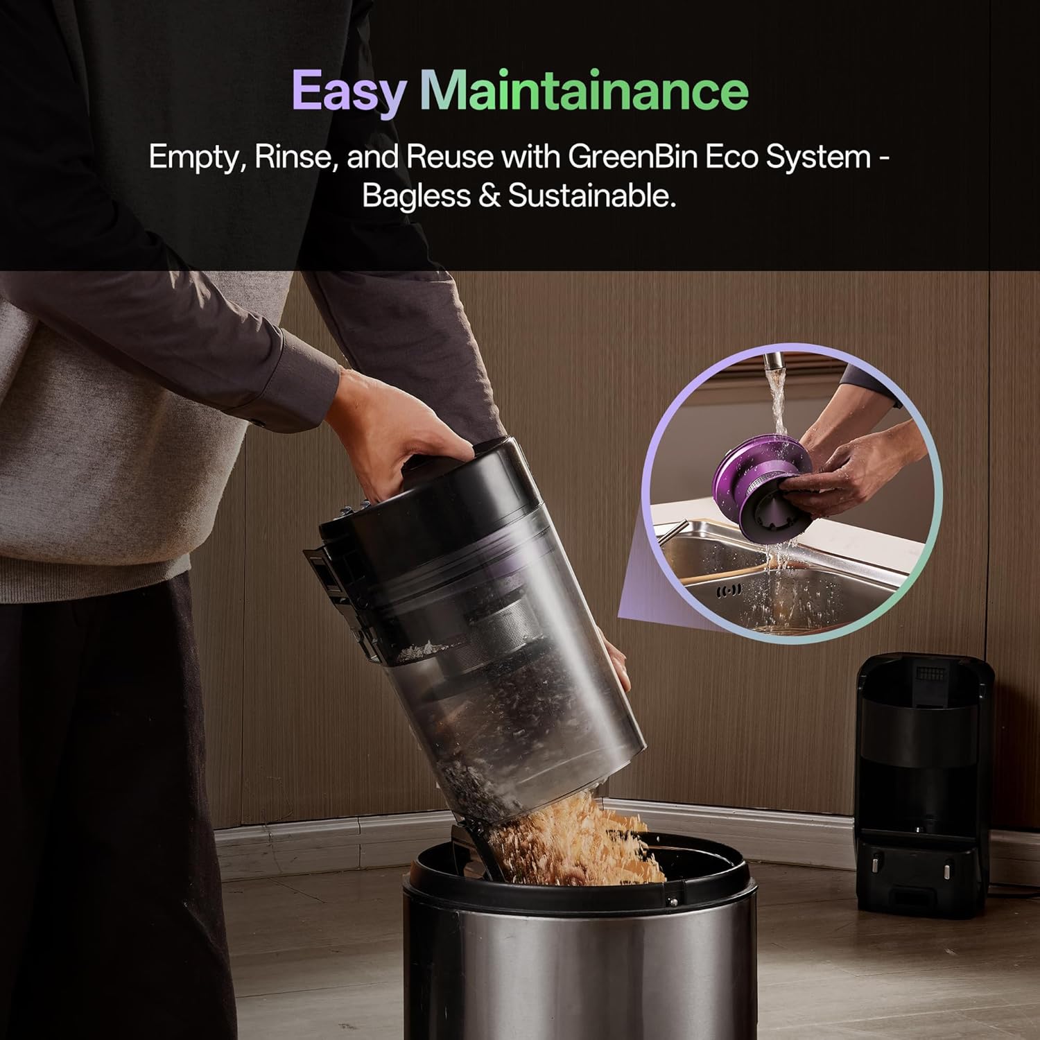 • 【4L Bagless Self-Emptying-Up to 90 Days Hands-Free Cleaning】 The W15 GreenBin robot vacuum with its innovative multi-cyclone docking station automatically empties the dustbin without raising dust or requiring direct contact with dirt – thus avoiding secondary pollution. The bagless design means no costly recurring purchases of consumables, making it economical and eco-friendly. (*Estimated annual savings: 70 Pounds).